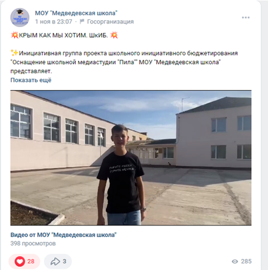 ссылка на видеоролик: https://vk.com/wall-200273541_1024